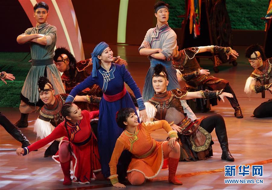 6月2日,內(nèi)蒙古藝術(shù)學(xué)院演員在第十二屆中國藝術(shù)節(jié)閉幕式上匯報演出獲得文華大獎的舞劇《草原英雄小姐妹》選段。 新華社記者 任瓏 攝