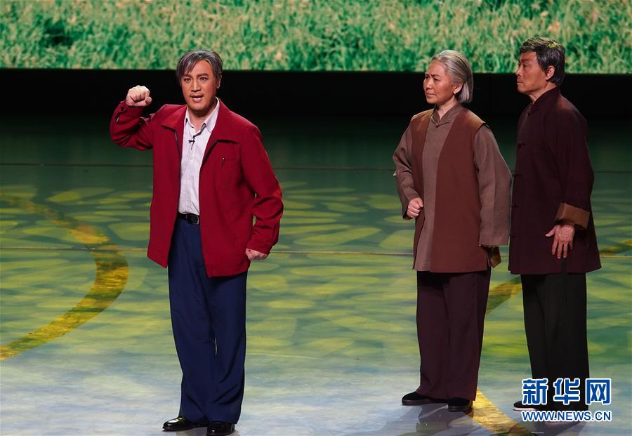 6月2日,蘇州市蘇劇傳習(xí)保護中心演員在第十二屆中國藝術(shù)節(jié)閉幕式上匯報演出獲得文華大獎的蘇劇《國鼎魂》選段。 新華社記者 任瓏 攝