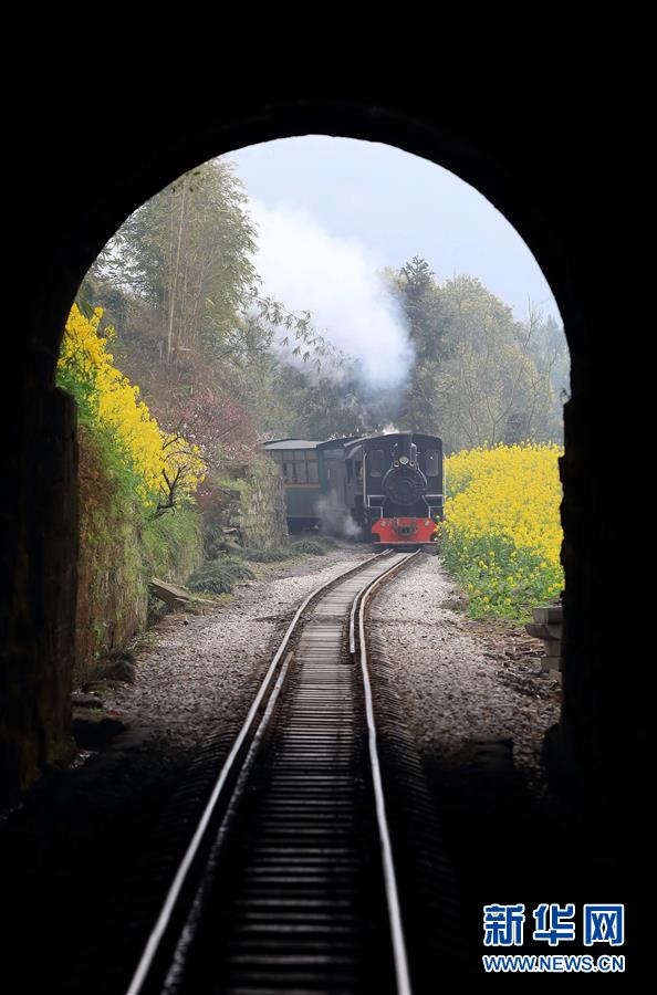 3月20日,一列嘉陽(yáng)小火車經(jīng)過老鷹嘴段。