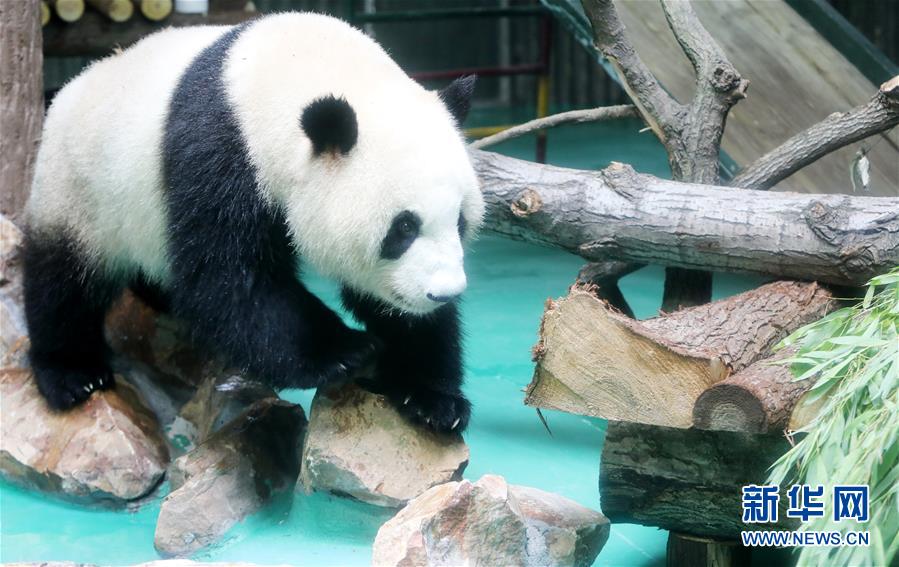 6月18日,大熊貓“星光”走在館內(nèi)水池邊的石頭上。 當(dāng)日,來自四川的大熊貓兄弟“和風(fēng)”與“星光”飛抵上海,正式開始了在上海動(dòng)物園為期三年的生活。為迎接這對(duì)“風(fēng)光兄弟”,上海動(dòng)物園將原有的大熊貓館擴(kuò)建并裝修一新,空調(diào)、水池、游樂場以及竹葉儲(chǔ)存間等配置齊全。 新華社記者 方喆 攝