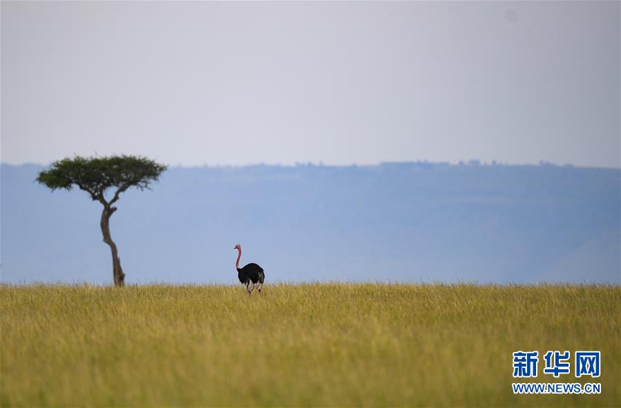 6月18日,在肯尼亞馬賽馬拉國(guó)家保護(hù)區(qū),一只鴕鳥(niǎo)在覓食。  新華社記者 李琰 攝