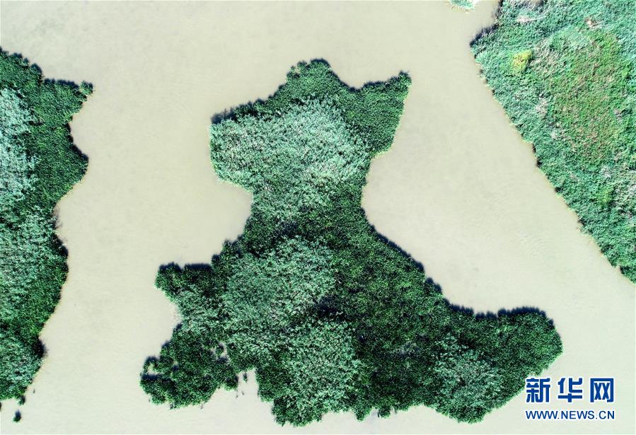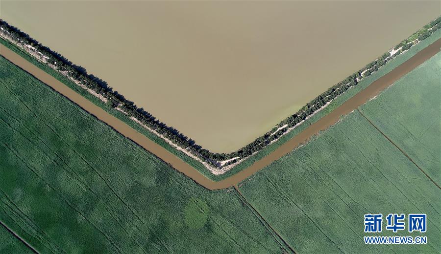 這是天津市寧河區(qū)七里海濕地內(nèi)蘆葦和水面形成的圖案(6月22日無人機拍攝)。