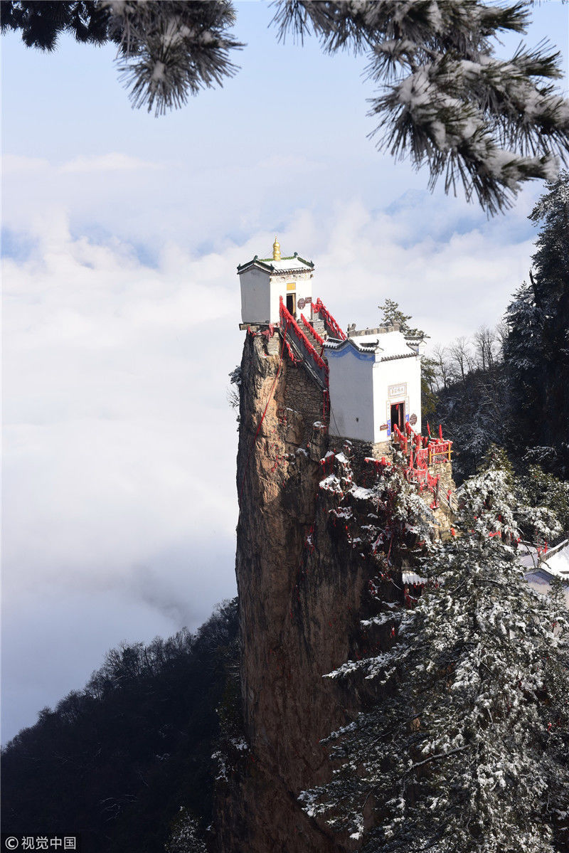 2019年3月3日,陜西商洛,位于鎮(zhèn)安縣的塔云山景區(qū)云海翻騰,宛如仙境。