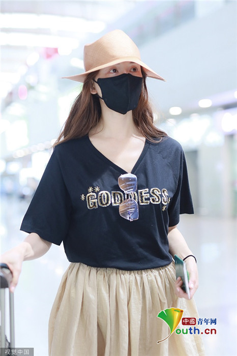 2019年7月23日,上海,林志玲現(xiàn)身機場,穿著打扮與三天前在臺北機場相比毫無變化,依舊身穿黑體恤搭配米色休閑褲,墨鏡也依舊掛在胸前。
