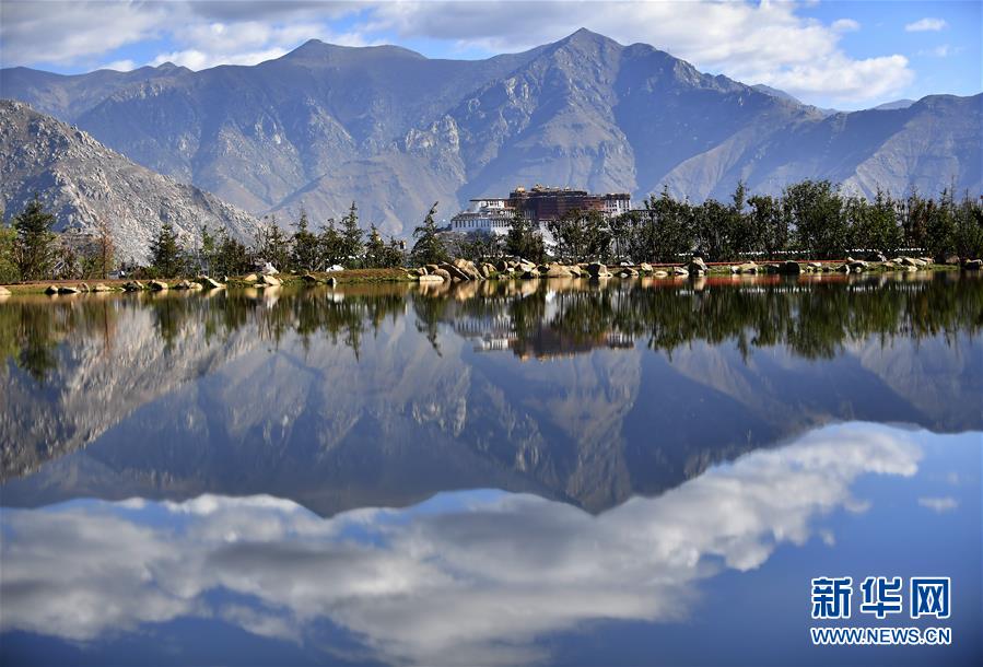 6月5日拍攝的藍(lán)天白云和綠水之間的布達(dá)拉宮。