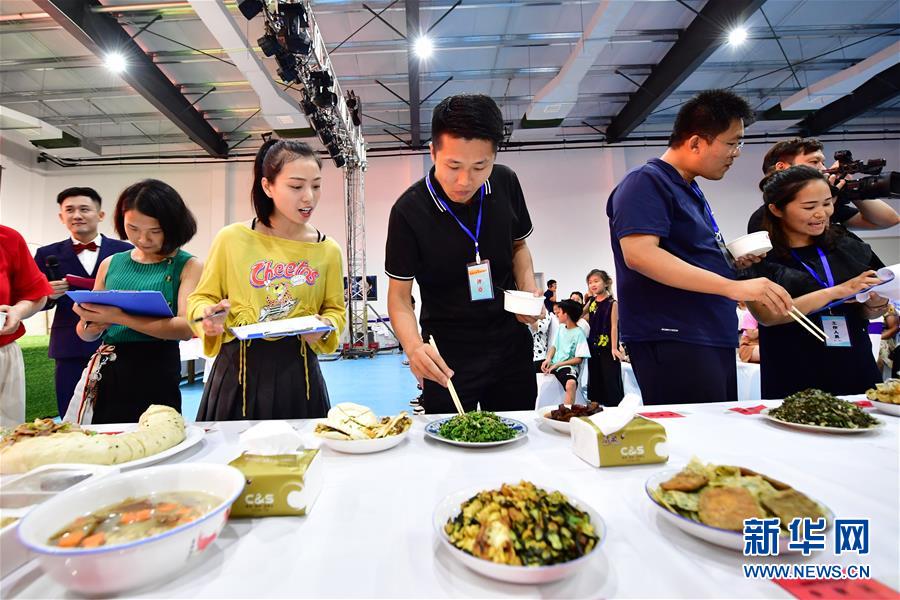 8月3日,在鄉(xiāng)村美食文化大賽現(xiàn)場(chǎng),評(píng)委在對(duì)菜品進(jìn)行評(píng)定。新華社記者馮大鵬攝