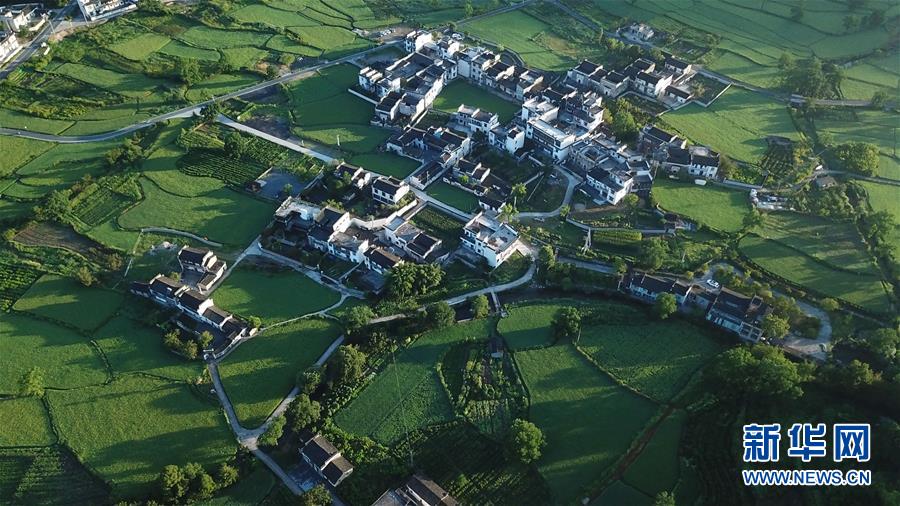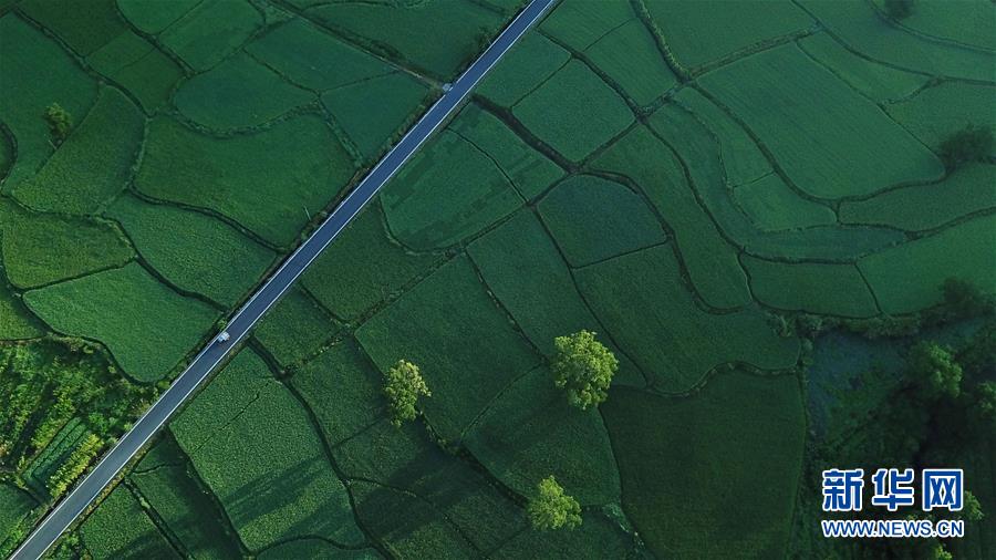 這是8月4日無人機拍攝的安徽黟縣宏村風景區(qū)附近的農(nóng)田。新華社記者 張端 攝