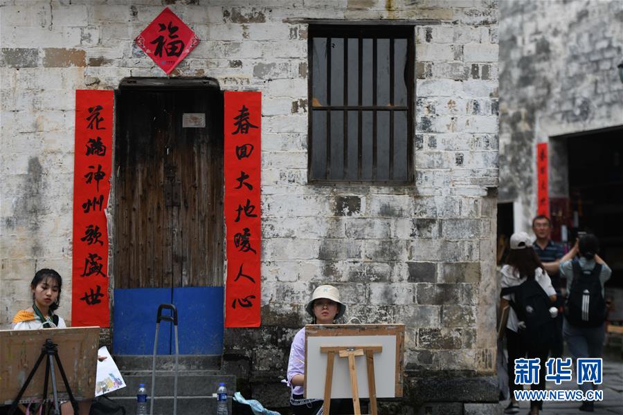 4月24日,繪畫愛好者在西遞風景區(qū)寫生。近日,隨著氣溫升高,位于安徽省黟縣的古村落西遞和宏村春意盎然,景色如畫。大批繪畫愛好者前來寫生,用畫筆描繪古村春色。 新華社記者 張端 攝