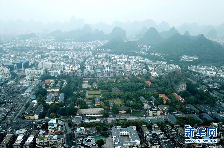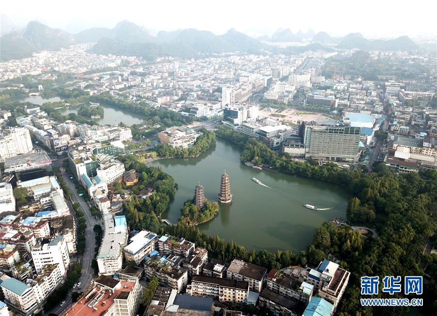 這是廣西桂林市的城市景觀(10月17日無人機拍攝)。  新華社記者 周華 攝