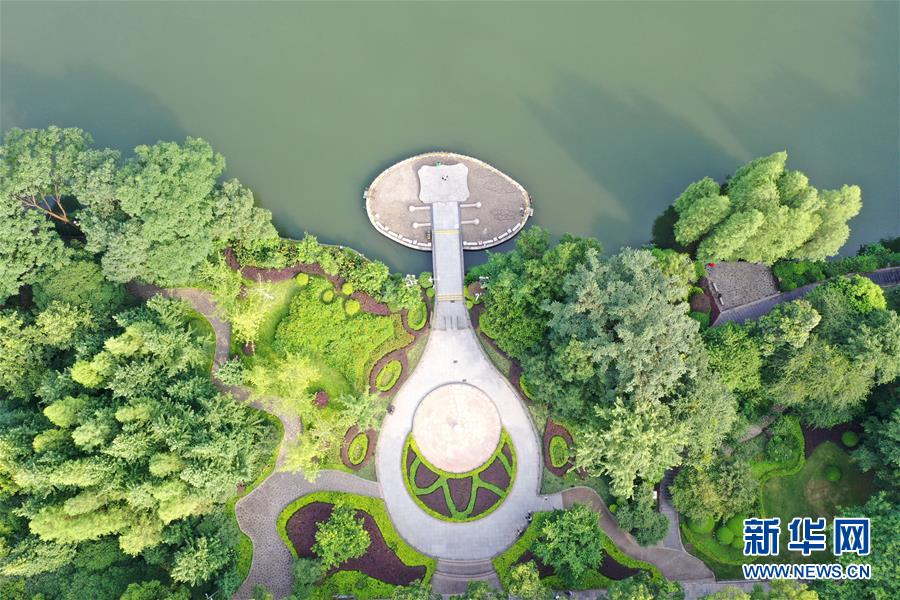 桂林市榕湖景觀(7月1日無人機拍攝)。 夏日時節(jié),廣西桂林市區(qū)內的榕湖、杉湖、桂湖、木龍湖等地綠樹成蔭、景色迷人。 新華社記者陸波岸攝