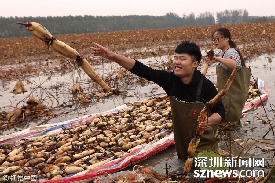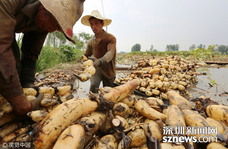 藕農們抓緊采藕、清洗、包裝、運輸,以供應市場。