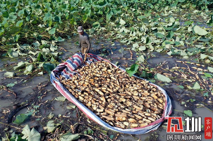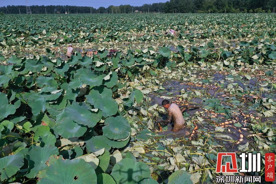 藕農泥中“掘金”初秋時節(jié)采藕忙
