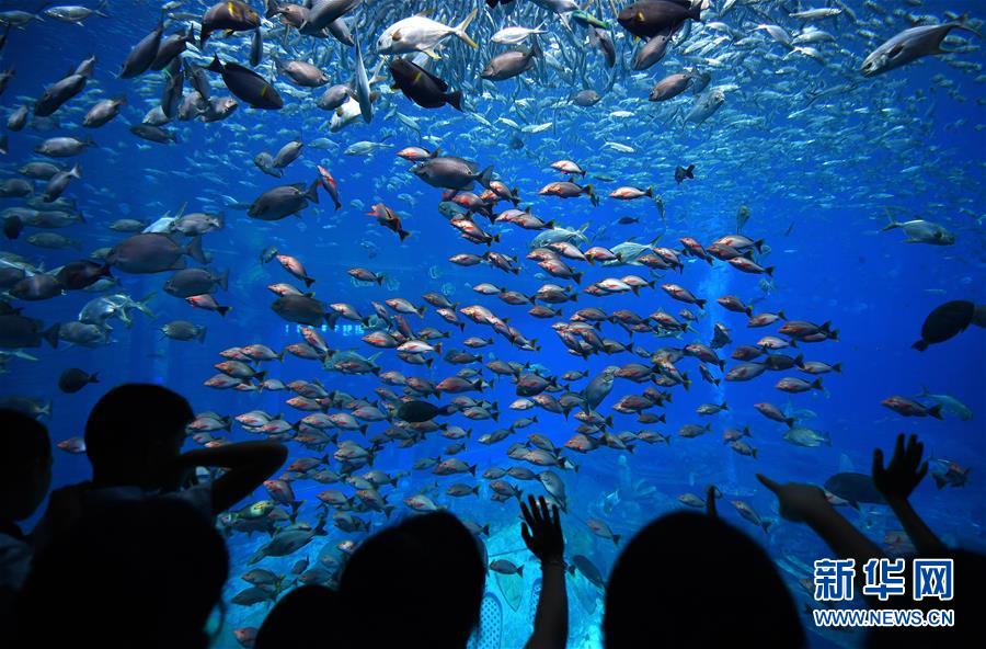 游客在三亞亞特蘭蒂斯水族館參觀(2019年7月10日攝)。新華社記者郭程攝