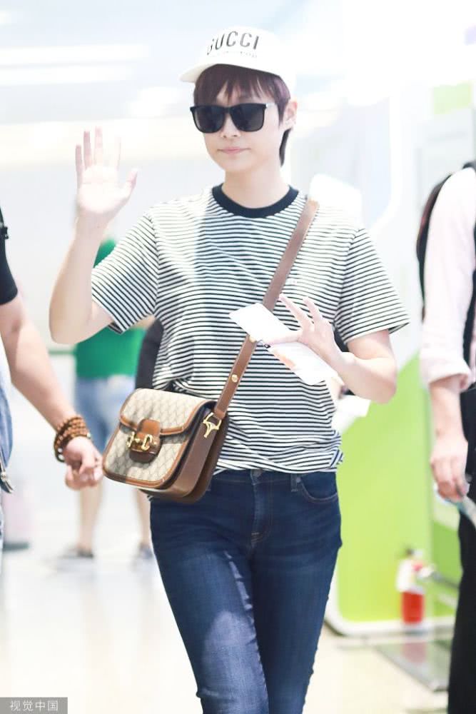 李宇春條紋裝扮現(xiàn)身機(jī)場(chǎng),青春活力,人氣爆棚