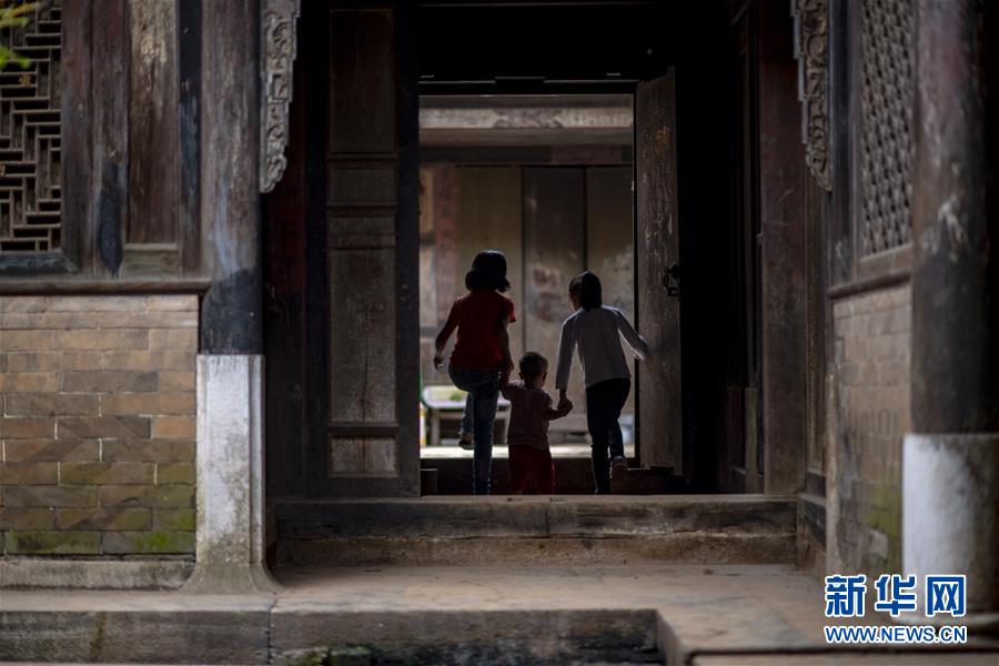 石屏縣異龍鎮(zhèn)符家營(yíng)村的小朋友們?cè)诖謇锏睦衔萃嫠#?月8日攝)。新華社記者 江文耀 攝