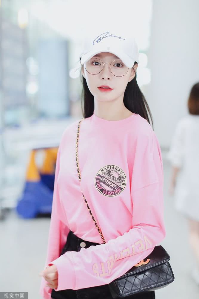 她戴著棒球帽身穿粉色衛(wèi)衣搭配熱褲,長(zhǎng)腿纖細(xì)又白嫩。
