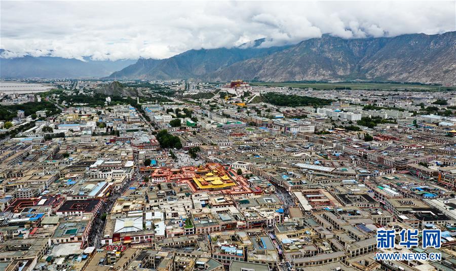 8月10日無人機拍攝的大昭寺和布達拉宮。新華社記者 王建華 攝