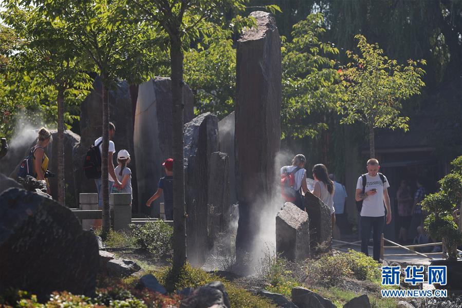 8月24日,在比利時(shí)布呂熱萊特市,游客參觀天堂動(dòng)物園的“中國(guó)園”。新華社記者 鄭煥松 攝