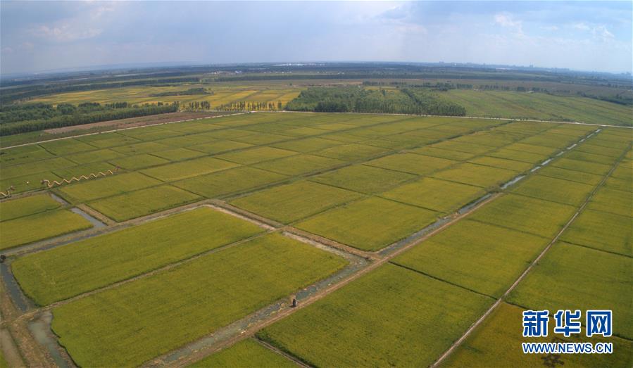 黃河水灌溉的青銅峽市葉盛鎮(zhèn)地三村農(nóng)田(9月1日無人機(jī)拍攝)。新華社記者劉詩平攝