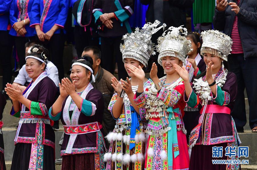 10月28日,在廣西融水苗族自治縣拱洞鄉(xiāng)龍令村,各族群眾觀看民俗表演。新華社記者 黃孝邦 攝