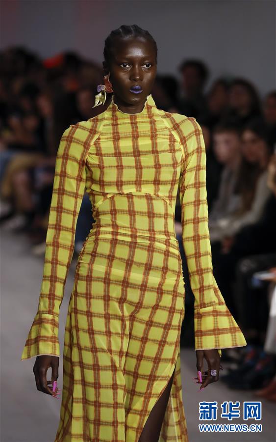 9月17日,在英國倫敦,模特在2020倫敦春夏時(shí)裝周上展示Charlotte Knowles品牌服飾。 新華社記者 韓巖 攝