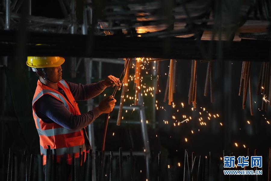 8月27日凌晨,施工人員在進(jìn)行橋梁轉(zhuǎn)體施工。新華社記者楊世堯攝