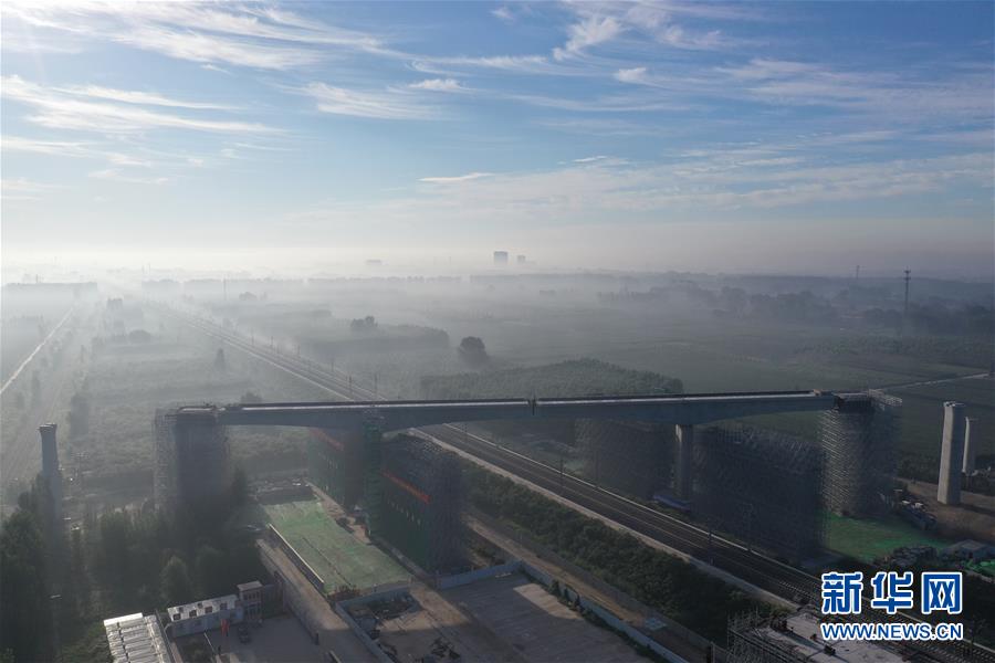 京雄城際鐵路跨津保鐵路橋梁轉(zhuǎn)體完成