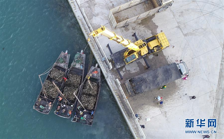 9月23日,滿載牡蠣的漁船返回碼頭(無人機(jī)拍攝)。新華社記者龍雷攝