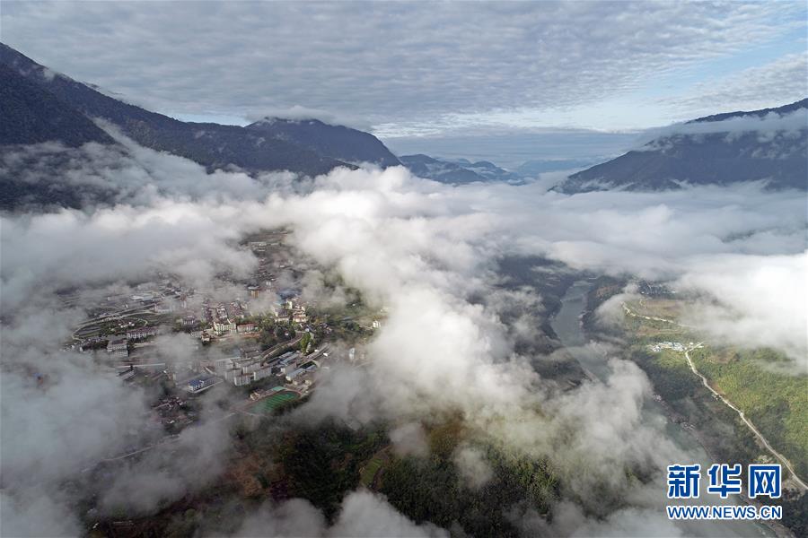 這是云?;\罩的西藏墨脫縣(4月9日無人機拍攝)。新華社記者李鑫攝
