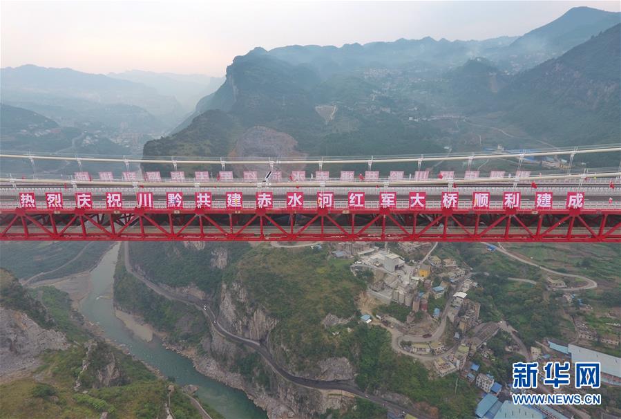 9月30日無人機(jī)拍攝的赤水河紅軍大橋。新華社記者劉坤攝
