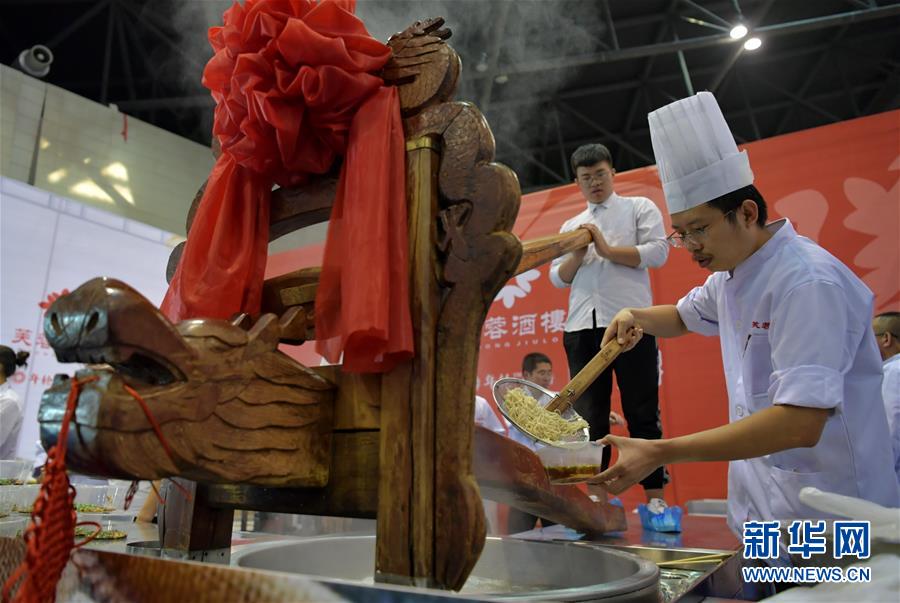 10月3日,面食師傅們?cè)谥谱骱訐泼?。新華社記者 曹陽 攝