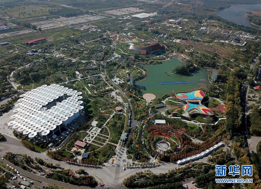 北京世園會園區(qū)(10月7日無人機拍攝)。新華社記者王毓國攝