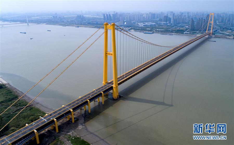 楊泗港大橋建設(shè)創(chuàng)造了多項(xiàng)世界之最:一是主橋跨度達(dá)1700米,為世界上跨度最大的雙層懸索橋;二是主橋設(shè)置雙層雙向12車道,是世界上通行能力最大的公路橋梁;三是大橋主纜設(shè)計(jì)張力6.5萬噸,采用了世界上強(qiáng)度等級(jí)最高的主纜鋼絲;四是大橋設(shè)置機(jī)動(dòng)車道、非機(jī)動(dòng)車道、人行觀光道,集過江交通與觀光于一體,是長江上功能最完備的橋梁。新華社記者熊琦攝