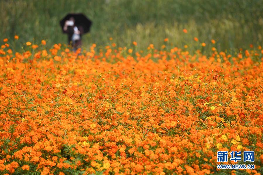 10月9日,游人在四季花海城市公園拍照。 秋日時節(jié),位于安徽省合肥市的四季花海城市公園花香四溢,色彩繽紛,成為游客和市民休閑游玩的好去處。 新華社記者 張端 攝