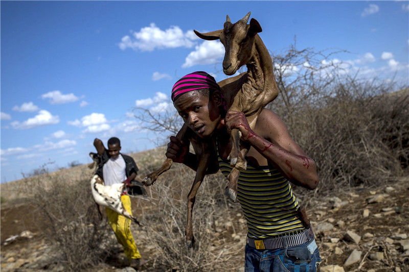 當(dāng)?shù)貢r間2017年3月29日,索馬里,索馬里海灣州的難民營。索馬里目前正遭遇嚴重旱災(zāi),每天超過3000人因干旱逃離家園。
