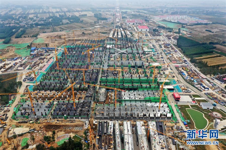 建設(shè)中的雄安站(10月10日無(wú)人機(jī)拍攝)。