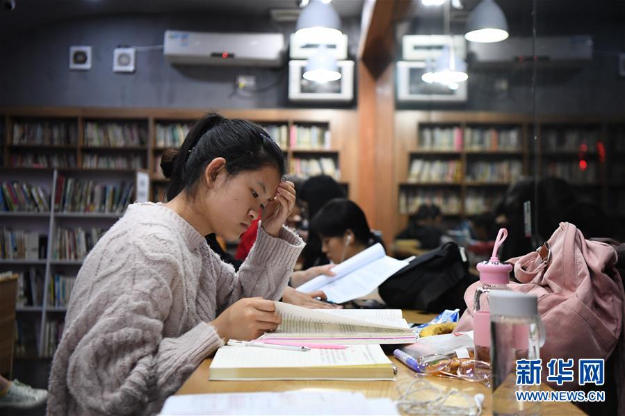 10月12日,一位讀者在湖南圖書館6點至24點開放的自助圖書館內(nèi)看書學習。新華社記者薛宇舸攝