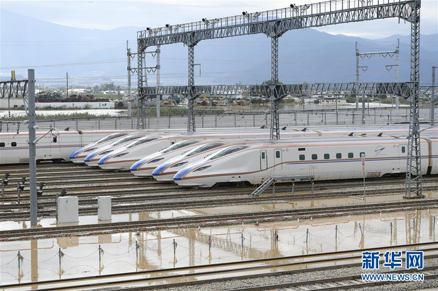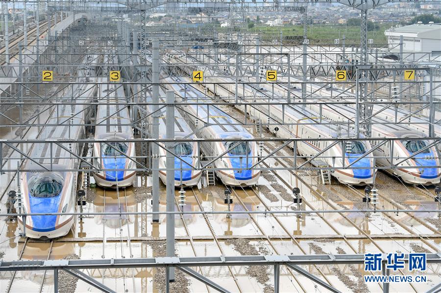 10月14日,在日本長(zhǎng)野市,東日本鐵路公司長(zhǎng)野新干線(xiàn)車(chē)輛中心的新干線(xiàn)列車(chē)被洪水浸泡。受縱貫東日本強(qiáng)臺(tái)風(fēng)“海貝思”帶來(lái)的強(qiáng)降雨影響,日本多地暴發(fā)洪災(zāi),已造成33人死亡、19人失蹤。據(jù)日本共同社13日統(tǒng)計(jì),“海貝思”過(guò)境導(dǎo)致日本多處河流泛濫,目前有21條河流決堤24處。其中,流經(jīng)長(zhǎng)野縣的千曲川決堤,造成長(zhǎng)野市和千曲市大范圍被淹,大片住宅區(qū)被洪水包圍,有的房屋甚至被淹至2層。新華社記者華義攝