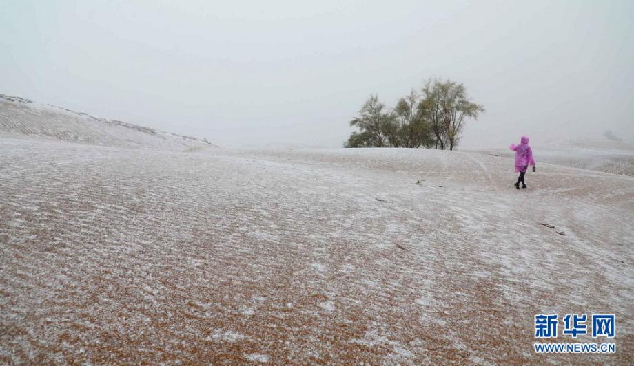 大漠沙覆雪:寧夏沙波頭迎來降雪
