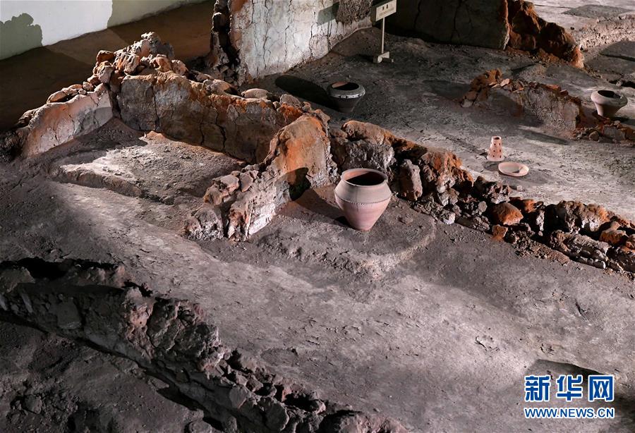 這是河南鄭州大河村遺址博物館內(nèi)的仰韶文化房基局部(12月11日攝)。