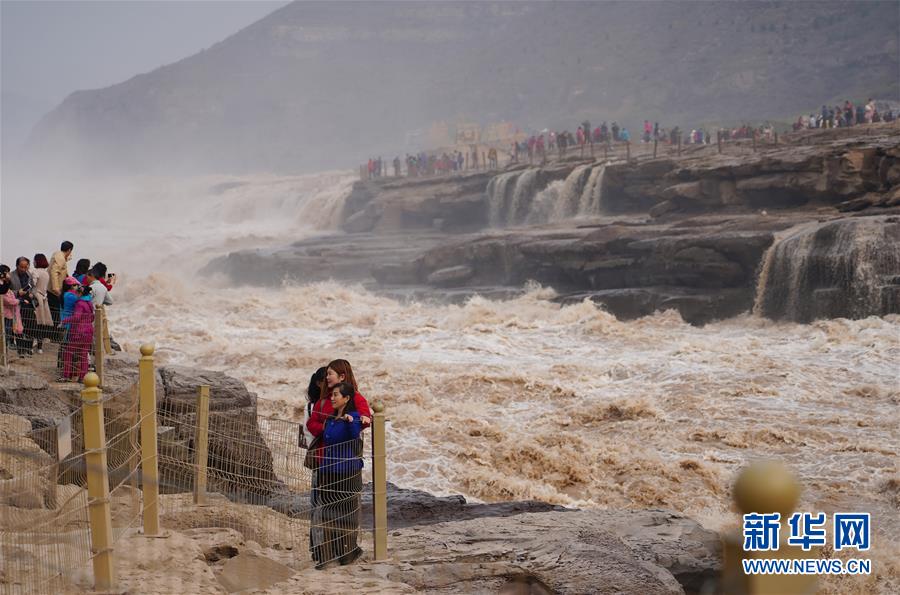 10月17日,游客在位于山西吉縣的壺口瀑布前拍照。