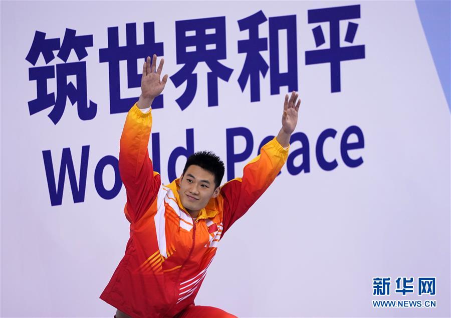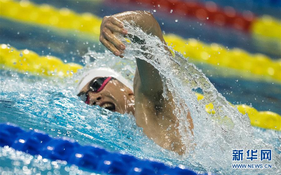 10月20日,中國隊(duì)選手牛鈺捷在比賽中入水。新華社記者肖藝九攝