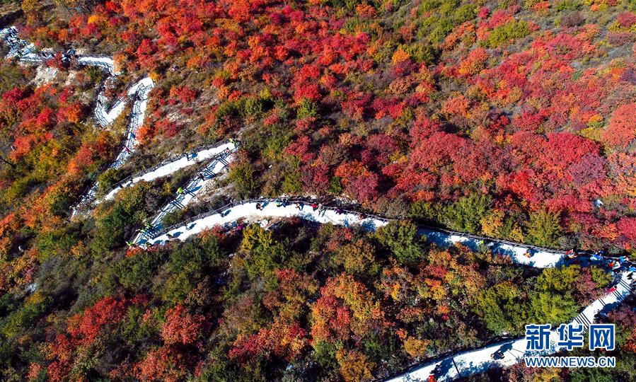 這是10月19日無人機(jī)拍攝的河北省涉縣太行紅葉大峽谷景色。金秋十月,河北省涉縣偏城鎮(zhèn)太行紅葉大峽谷的紅葉進(jìn)入觀賞佳期,吸引眾多游客前來登山賞景。新華社記者王曉攝