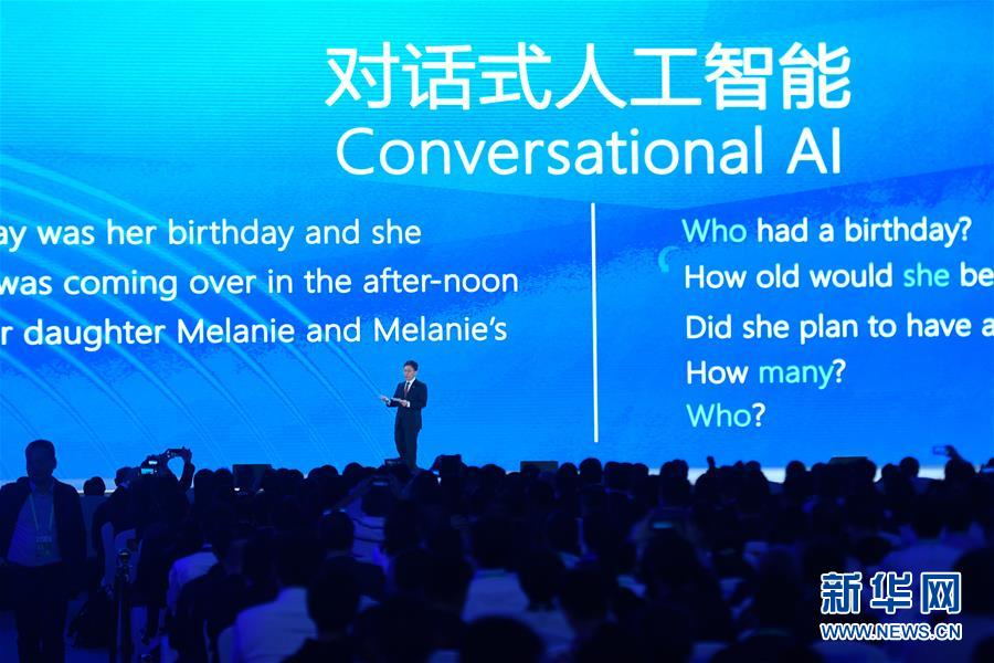 10月20日,微軟公司代表在介紹“統(tǒng)一自然語言預(yù)訓(xùn)練模型與機器閱讀理解”。新華社記者黃宗治攝