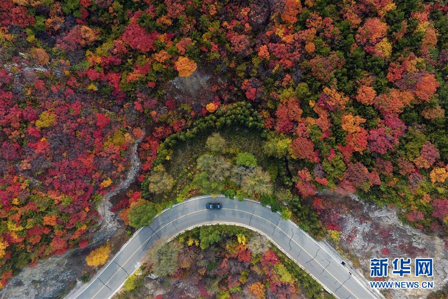 車輛行駛在山西省太原市玉泉山盤山公路上(10月22日無人機(jī)拍攝)。