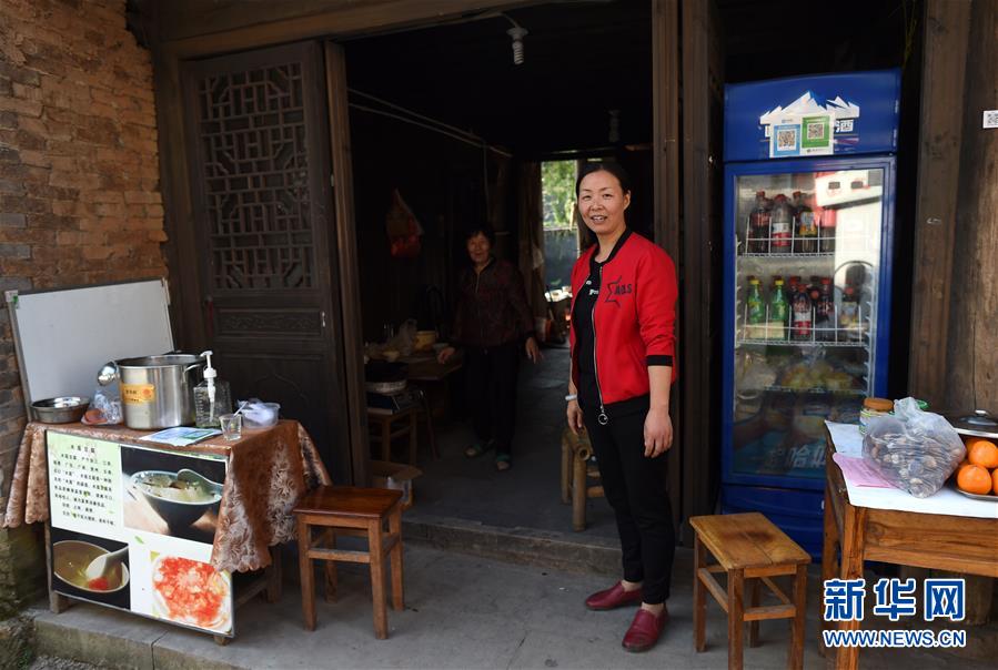 10月24日,班竹村村民王彩妃(前)站在自家的特色小吃攤前。王彩妃曾在縣城打工,村里旅游業(yè)發(fā)展起來后回家開了個(gè)小吃攤,收入比以前大大增加。浙江省新昌縣境內(nèi)的班竹村位于天姥山腳下,被稱為“天姥門戶”,曾是浙東“唐詩之路”上的驛站。近年來,班竹村依托深厚的文化底蘊(yùn)大力發(fā)展鄉(xiāng)村旅游,全村“人人參股、戶戶分紅”,將整個(gè)村莊打造為旅游綜合體,今年以來班竹村旅游收入已超過800萬元。新華社記者韓傳號(hào)攝