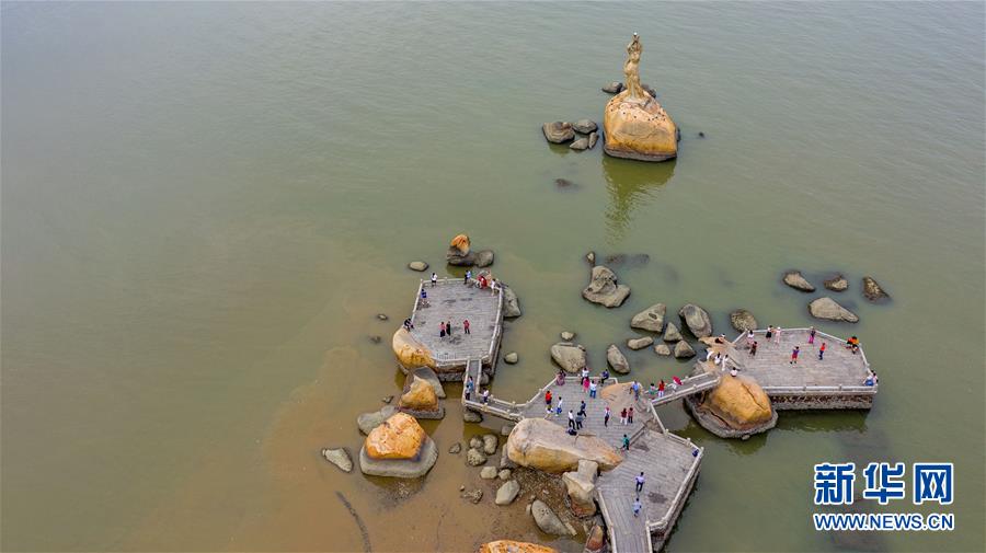10月24日下午無(wú)人機(jī)拍攝的珠海標(biāo)志性景觀——珠海漁女。2018年10月23日,港珠澳大橋正式開(kāi)通。新華社記者張金加攝