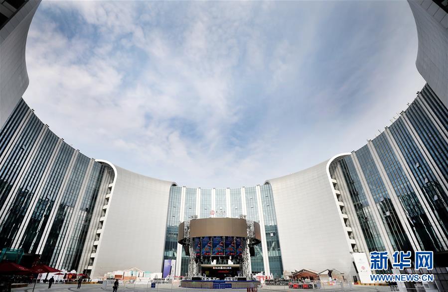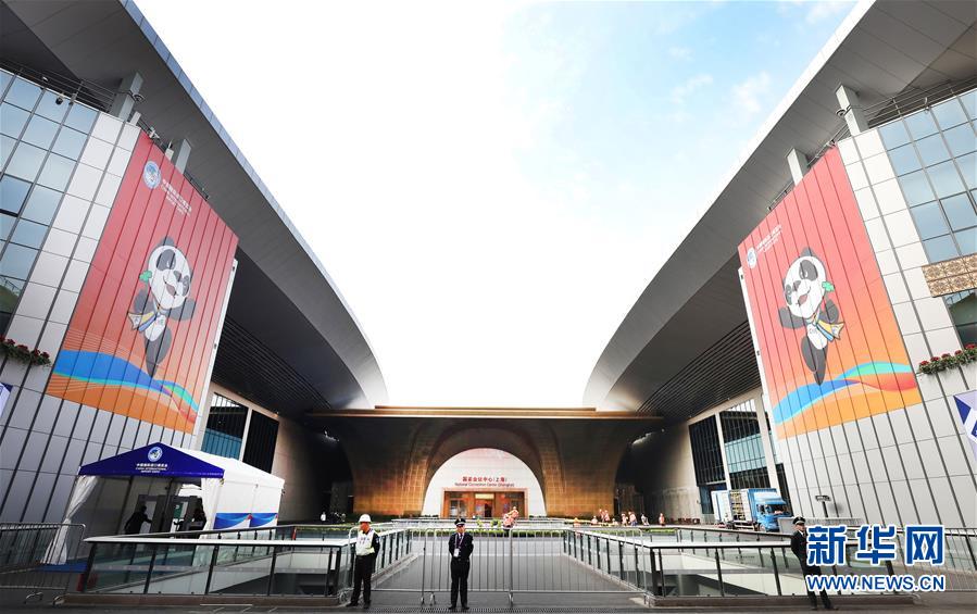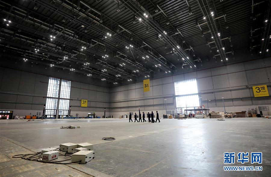 這是10月25日拍攝的正在進(jìn)行裝飾施工的國(guó)家會(huì)展中心(上海)南廣場(chǎng)。  新華社記者 方喆攝