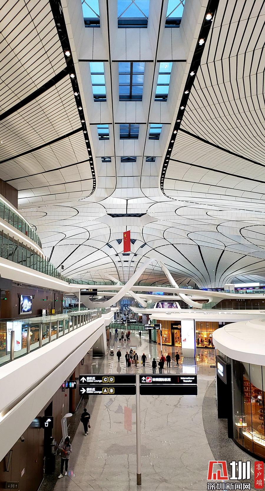 北京大興機(jī)場(chǎng)橫跨兩市,距離天安門(mén)46公里,首都機(jī)場(chǎng)67公里,北京城市副中心54公里。見(jiàn)圳客戶(hù)端、深圳新聞網(wǎng)記者劉東博攝