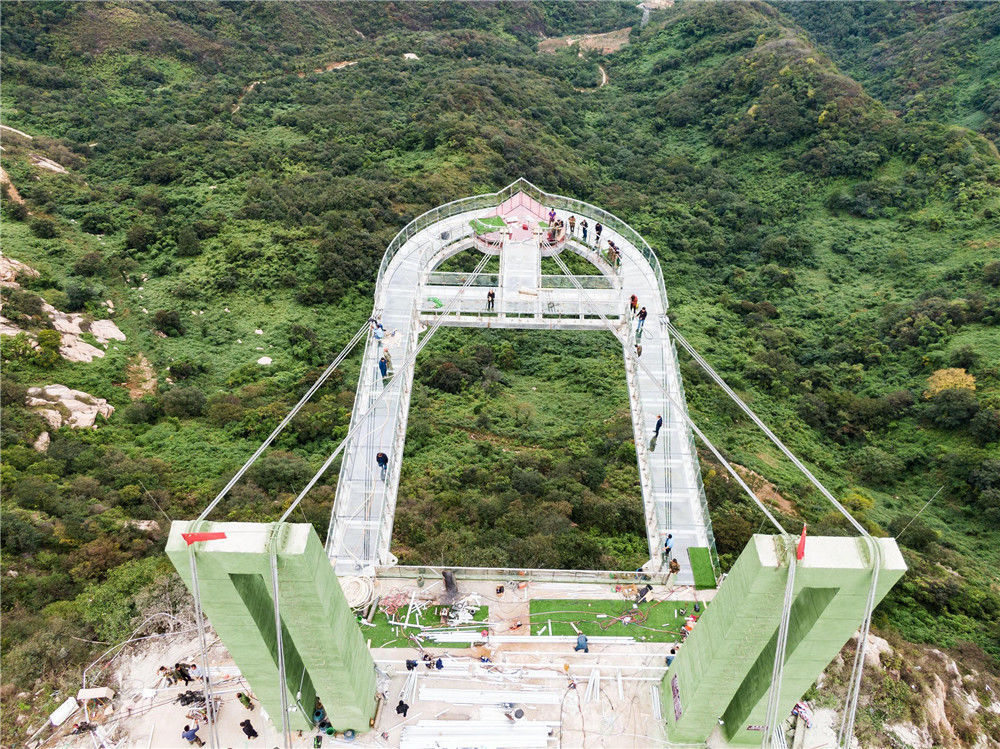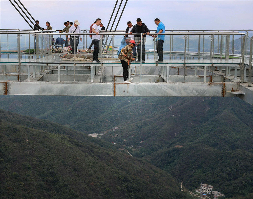 恐高勿入!“高空玻璃懸廊”在河南南陽七峰山落成